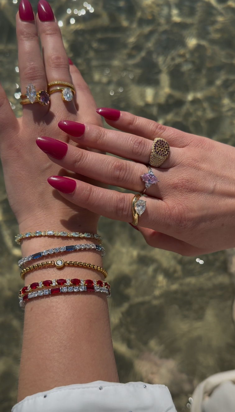 Add a pop of color with this intriguing sterling silver and cubic zirconia ring. It's perfect for everyday wear. You can stack it or wear it solo. This ring comes in a size 6 & 7.